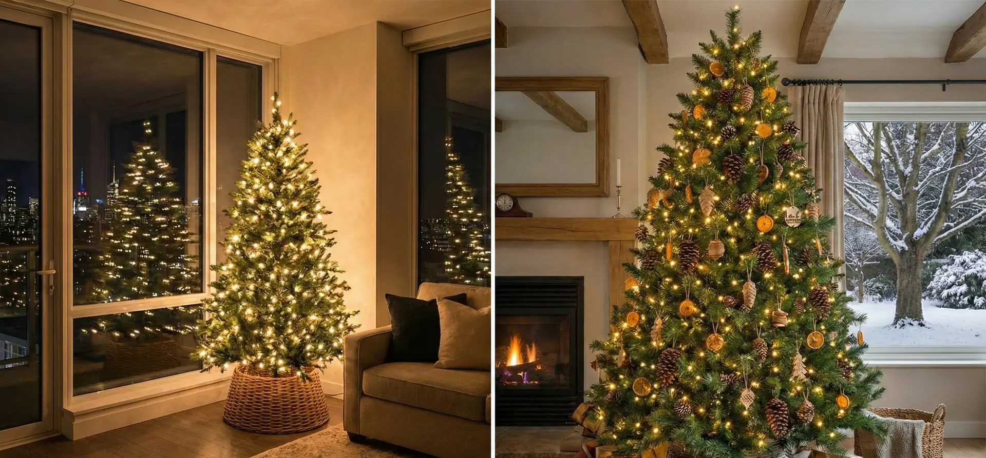 A: 원목은 향이 좋지만 낙엽이 지고 관리가 힘들어 최근에는 정교하게 제작된 인조 트리를 선호하는 경향이 높아지고 있어요. 특히 잎의 질감이 실제와 흡사한 'PE 소재' 함량이 높은 제품을 고르는 것이 핵심이에요.
