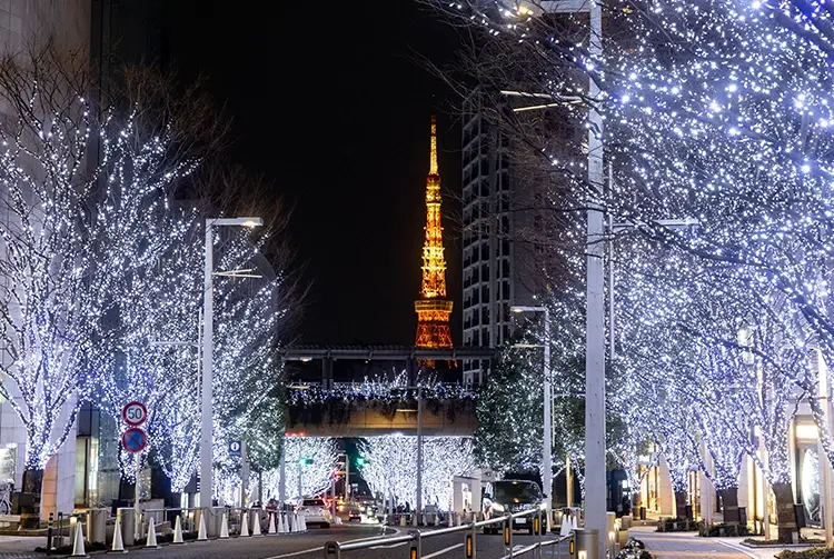 멀리 도쿄타워까지 이어지는 조명 라인이 특징이어서 매년 많은 여행객들이 방문하고 있어요. 도쿄 타워가 보이는 방향에서 촬영하면 가장 '도쿄스러운' 겨울 사진을 남길 수 있어요.